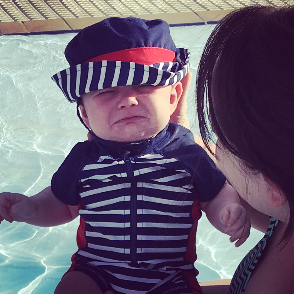 Calvin, however, loves it now! He was like a little fish once he got used to it.